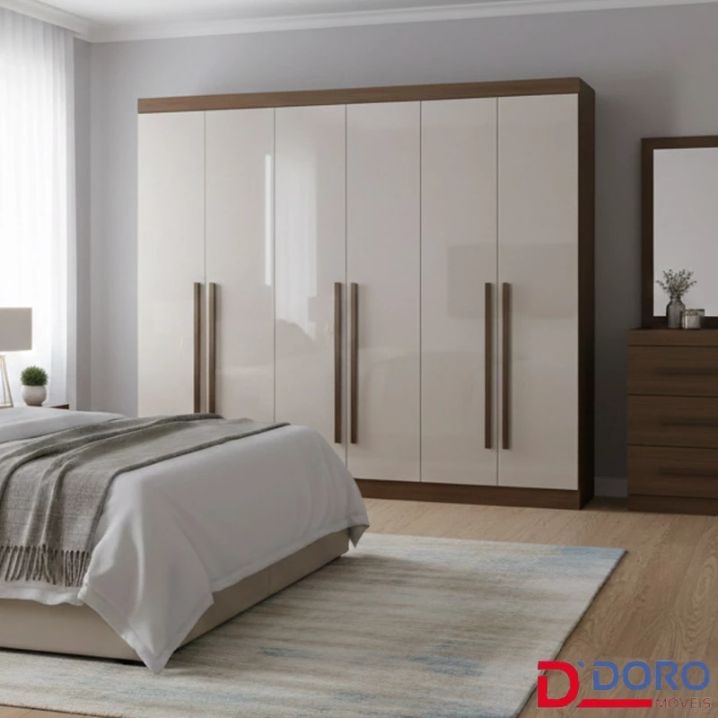 - Portas: 06 portas com dobradiças metálicas e puxador em alumínio