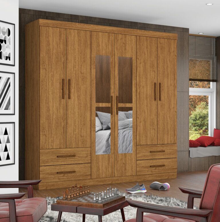 - Portas: 06 portas com dobradiças de aço, sendo duas com espelho